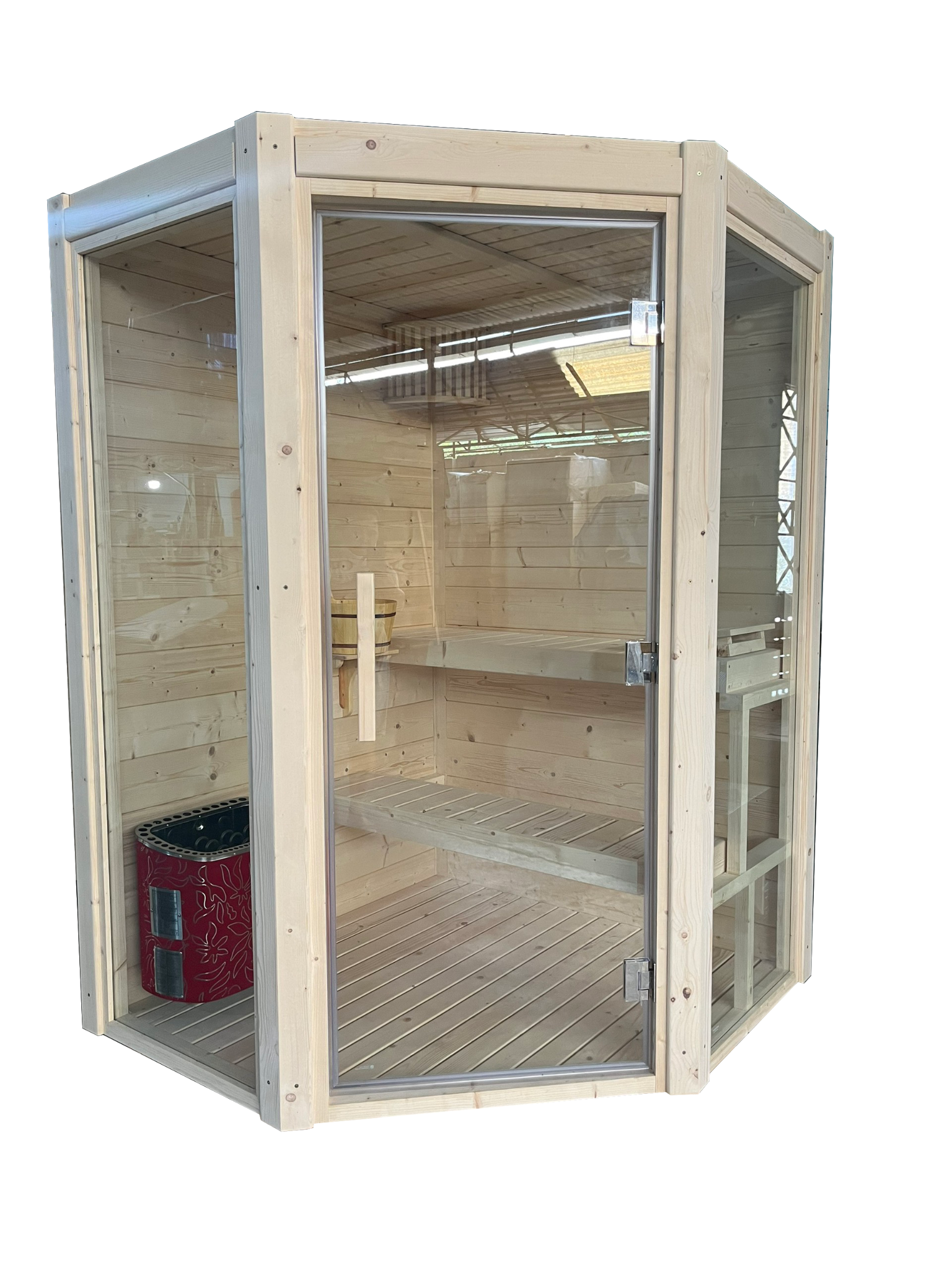 Phòng Xông Hơi Gỗ Thông Góc DomiSauna (Cạnh 1.4m) | Giải Pháp Tiết Kiệm Không Gian, Thư Giãn Đỉnh Cao Tại Nhà